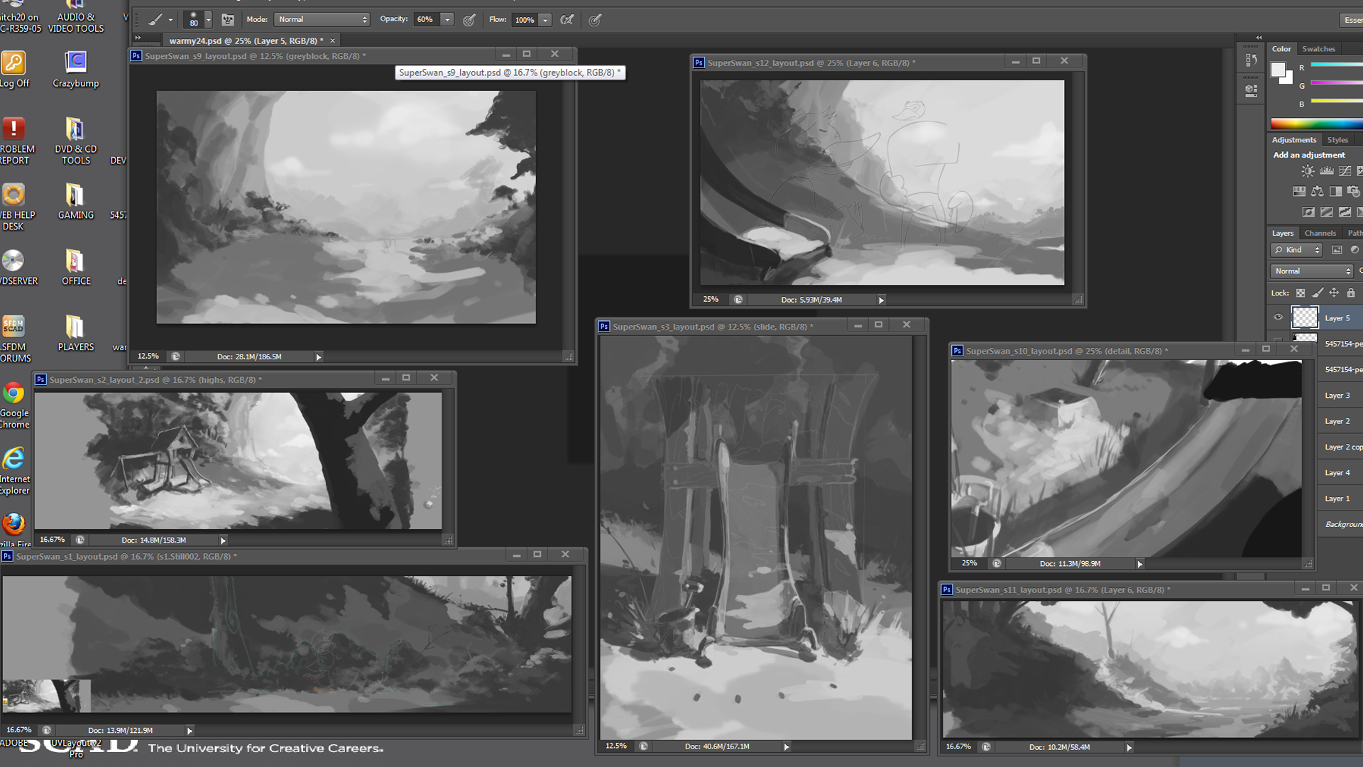 So I’ve finally begun doing the layouts for my Senior Film “Super Swan.” I have 7 to do and I really want these to shine through in this animation so I’m going the extra mile developing these. Here are the roughs of all 7 layouts for the film I did in the past 2 days and some Vis-Dev. More to come!!