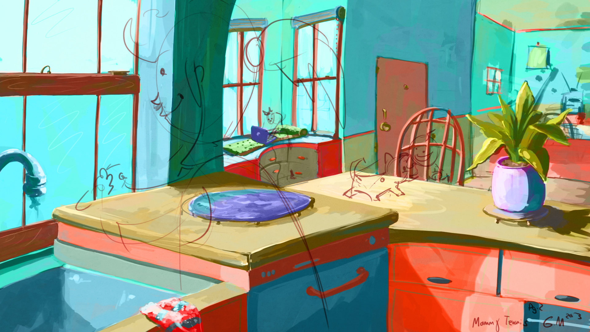 I got picked up to do an independent children’s book for my old P.E Coach. This is a WIP of pg.2 where Mommy is cooking a breakfast before her big match for her family. The characters still need to be painted and some other textures needed to be painted in too but I kinda like how it’s going. I’m legitimately excited for his book.