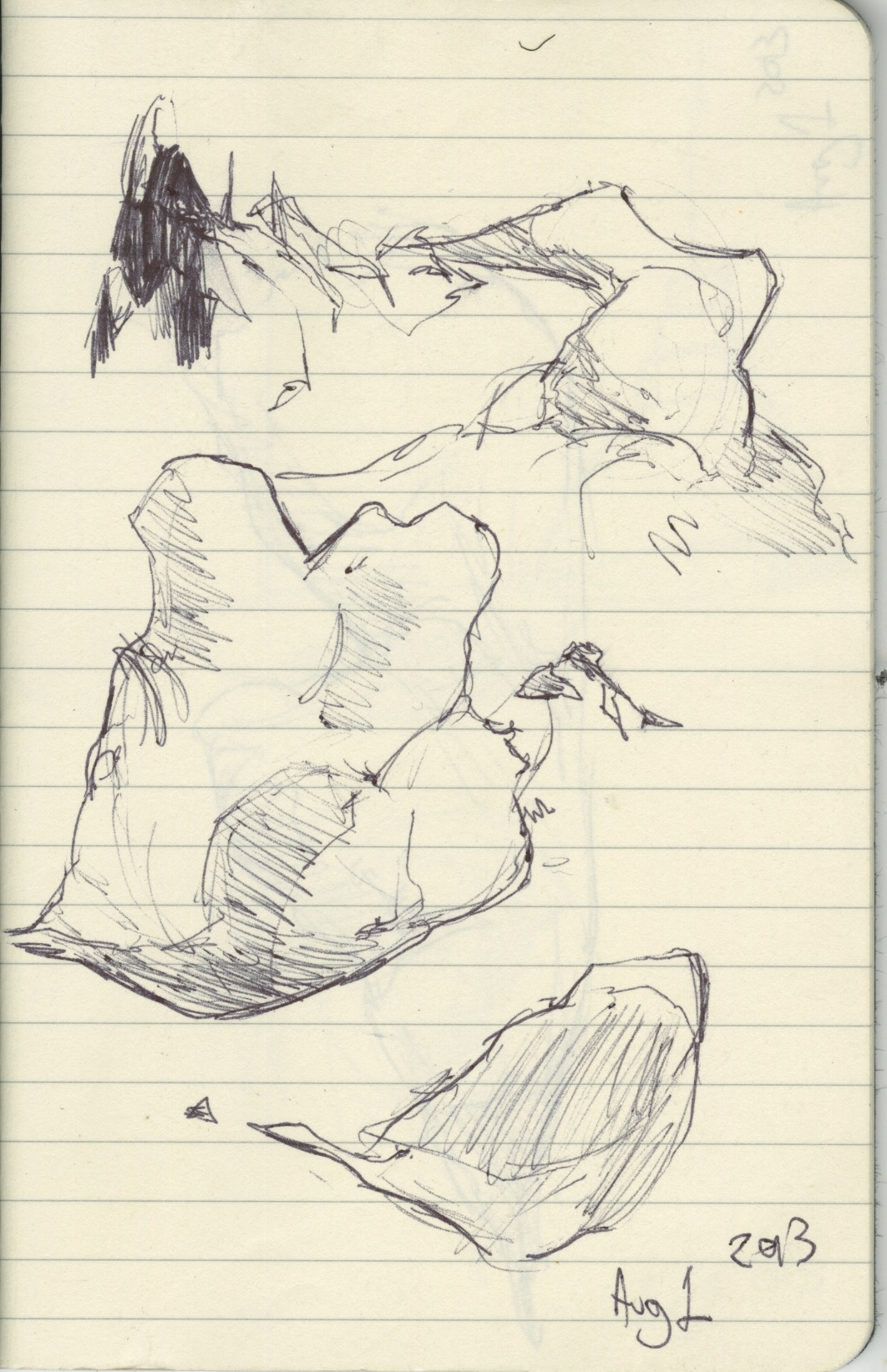 About a week ago I started carrying around a little pocket sketch book that I’ve been doodling in during my spare moments (and I mean moments). I’ve taken a fascination with drawing clouds from life and rendering them in more simple interesting shapes. Here are a few so far.