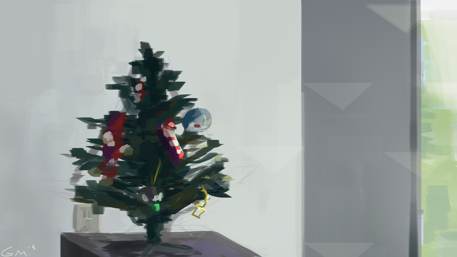 Another life study! This is my brother’s pathetic little christmas tree that he has sitting on a speaker on his apartment.