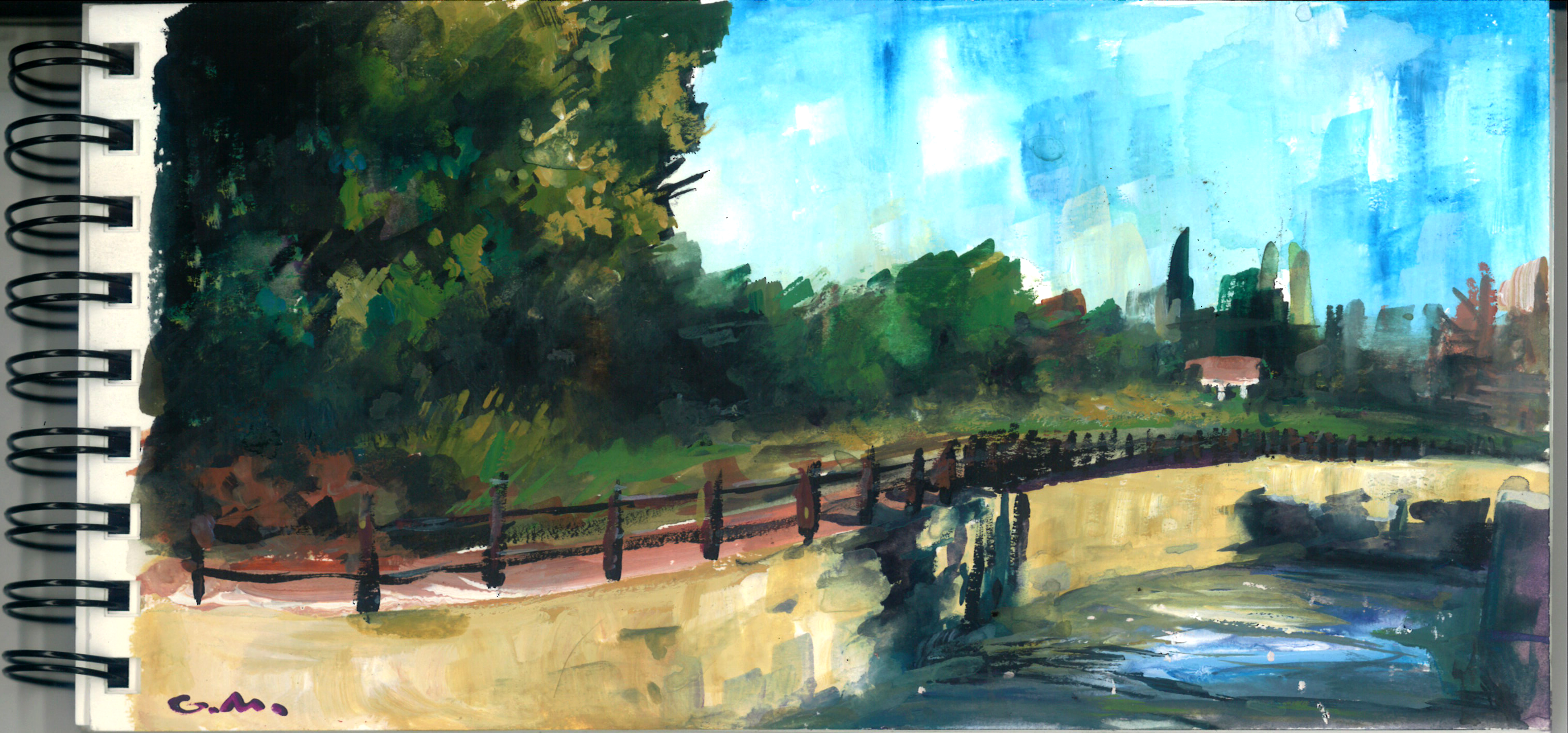 Los Angels River in Studio City. Guache on water color paper.