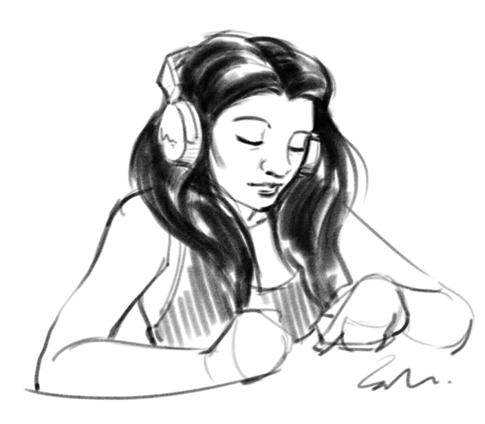 I’m moving from just doing simple gestures of peoples faces to trying to capture more detail each sitting. I’ve never been a huge fan of portraits but by taking a few extra moments its really improved my ability to observe subtle facial details. There is SO much going on in a face all the time! The underlying facial muscles creating their current expression, wrinkles and signs of age, shape and the magical lustrous hair that can change someones appearance entirely! Hair is like the product packaging for the face haha. It’s a ton of fun to warm up with daily life drawings of people as long as they never notice you.